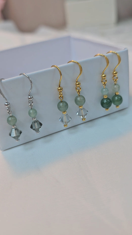 Yuan | 'Forest' Jadeite Drop Earrings in Morning Dew