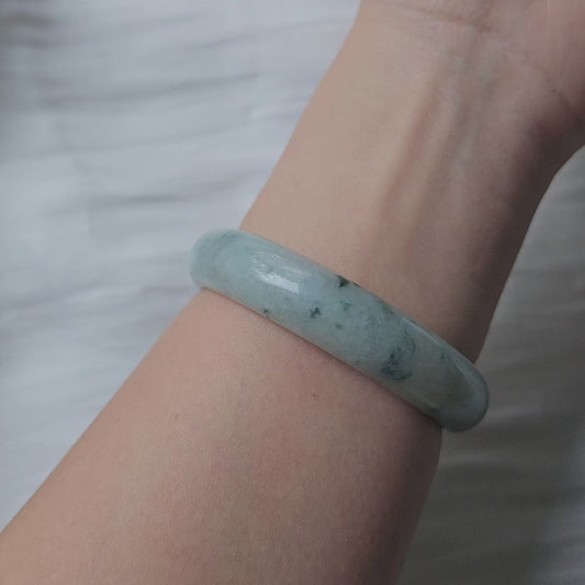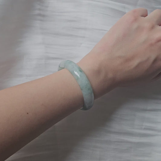 GUARDIAN | JAYDE Natural Grade-A Jadeite Bangle in Floral Green/Piao Hua (56.3mm Half Round)