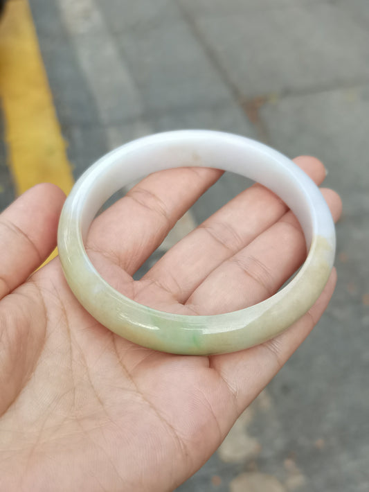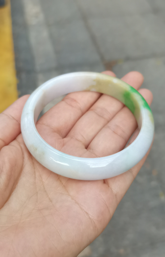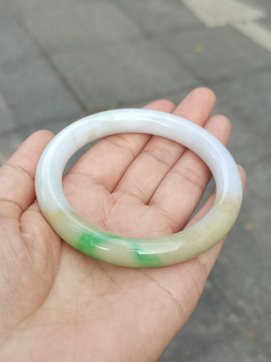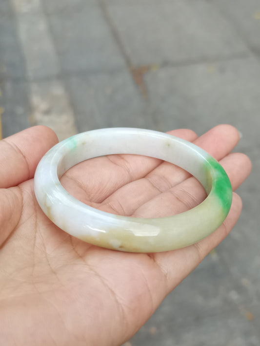 GUARDIAN | JAYDE Natural Grade-A Jadeite Bangle in Trio Colours (Green, White & Yellow) (54.1mm Half Round)