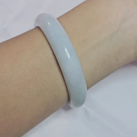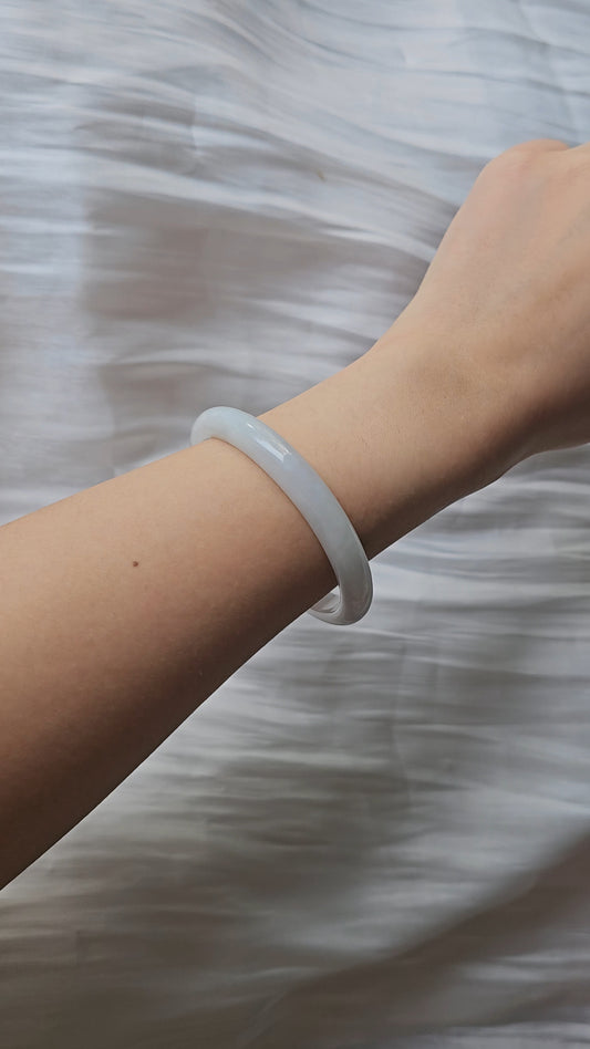 GUARDIAN | JAYDE Natural Grade-A Jadeite Bangle in Icy White (56mm Half Round)