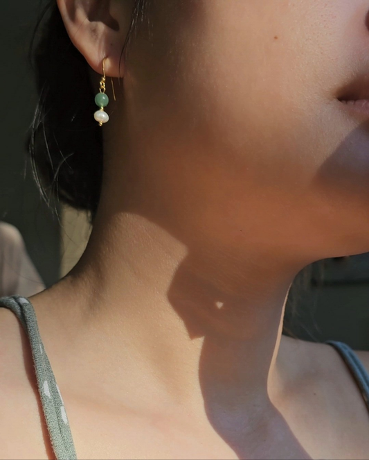 Yuan | Connie Jadeite Drop Earrings in Forest Mist