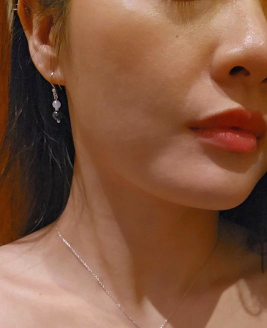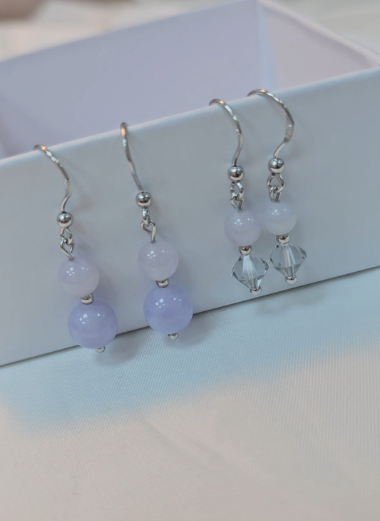 Yuan | 'Mei' Jadeite Drop Earrings in Fairy White