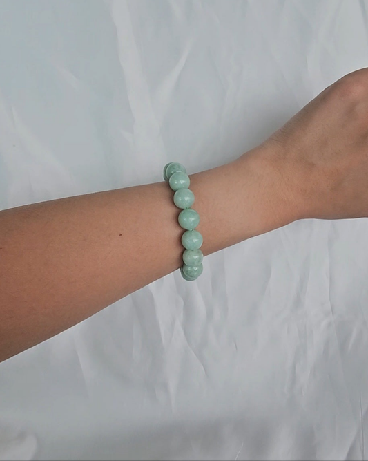 Yuan | Jadeite Bead Bracelet in Pastel Green (11mm)