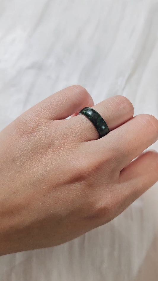 Yuan | Untreated Grade-A Jadeite Ring in Black Floral Green