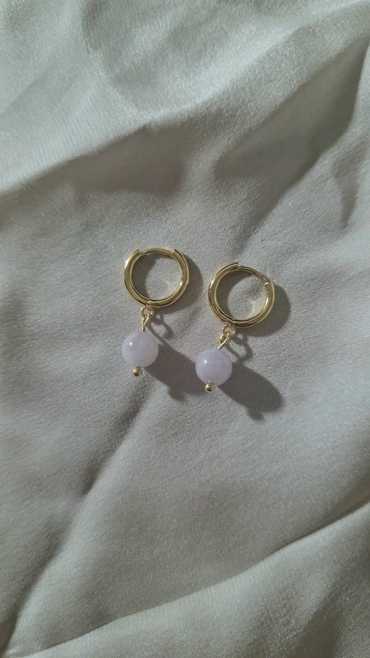 Yuan | Huggie Jadeite Earrings in Light Lavender Purple