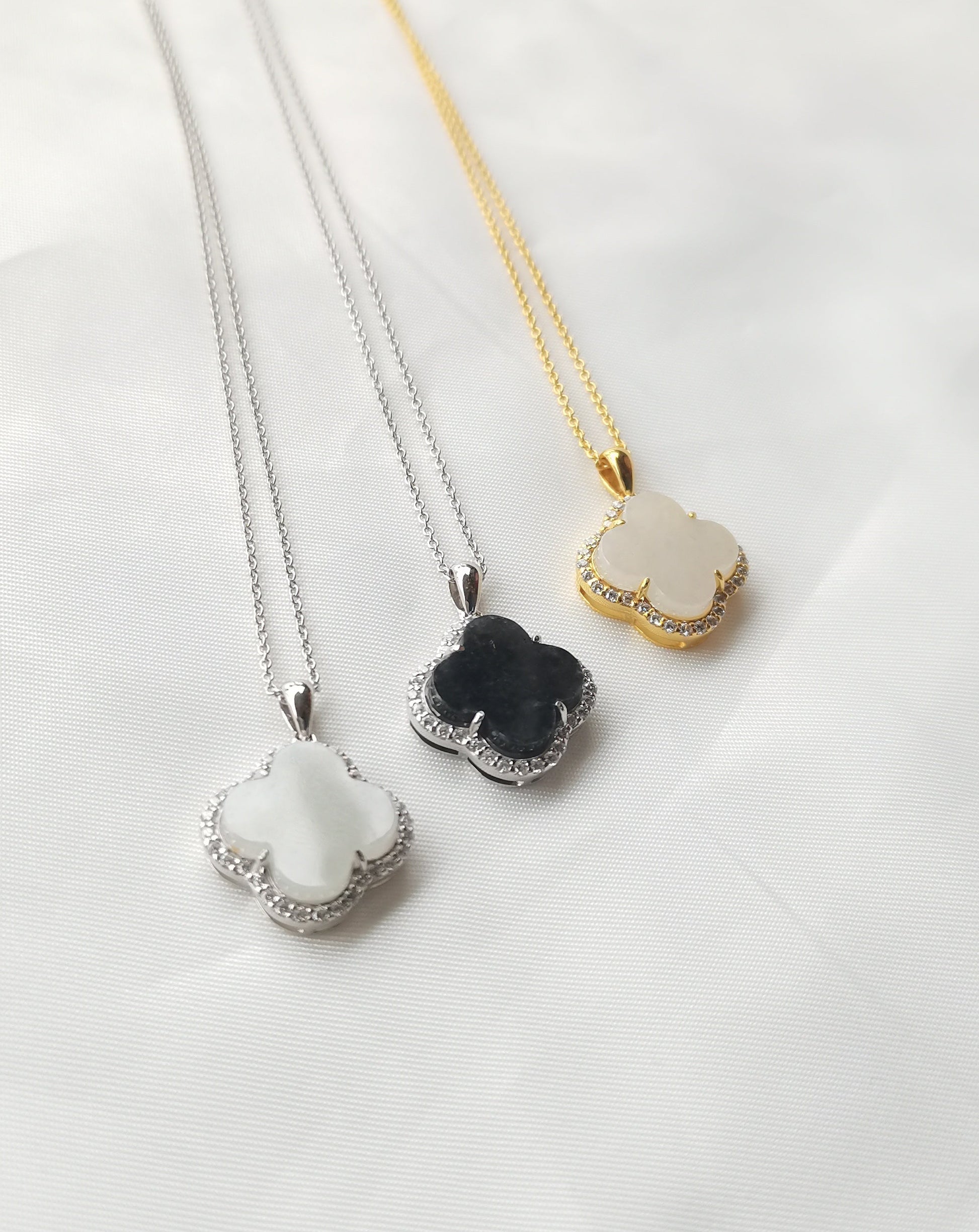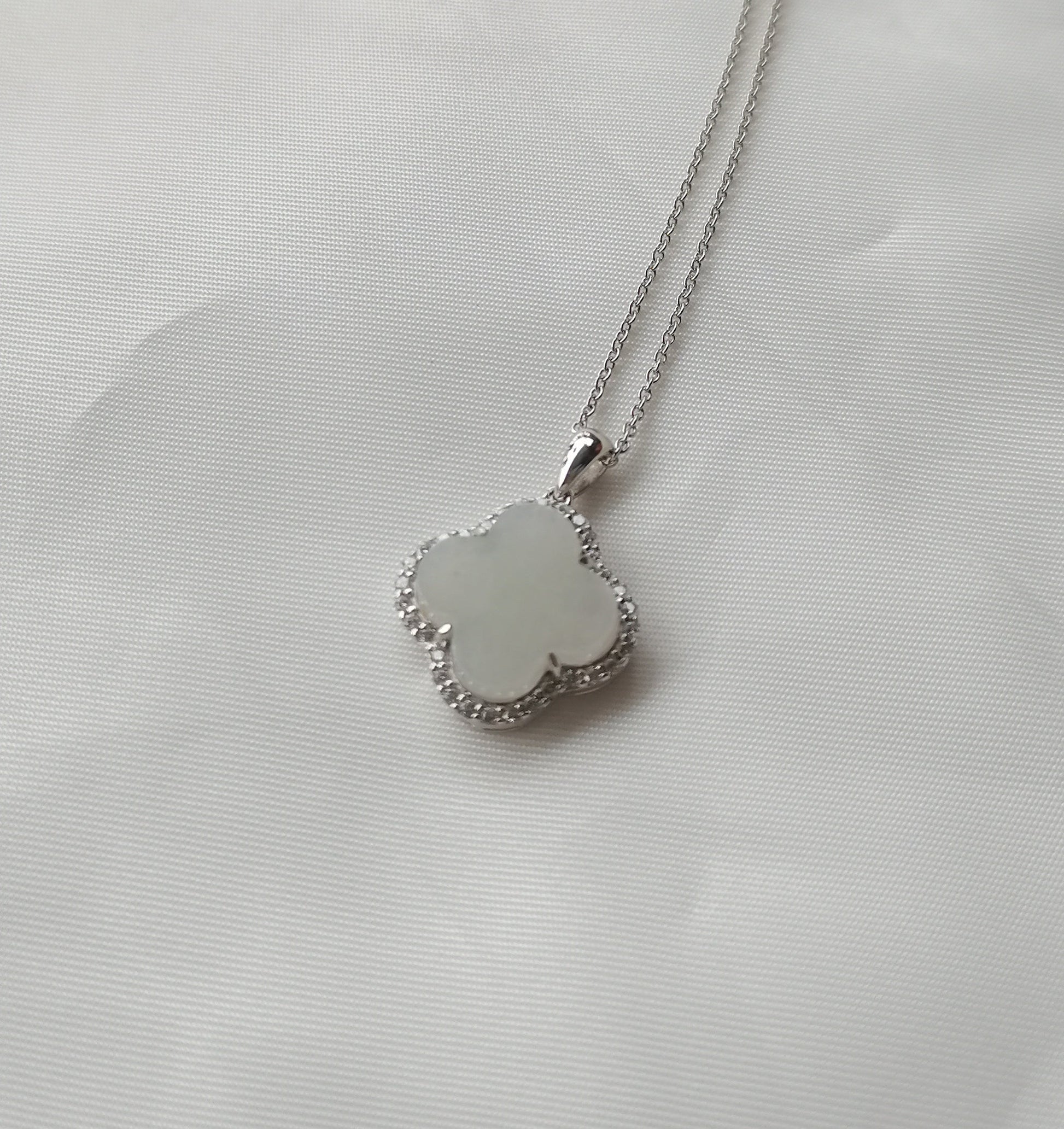 Nature | Serendipity Four Leaf Clover Jadeite Pendant in Dreamy White (Rhodium-plated Sterling Silver)
