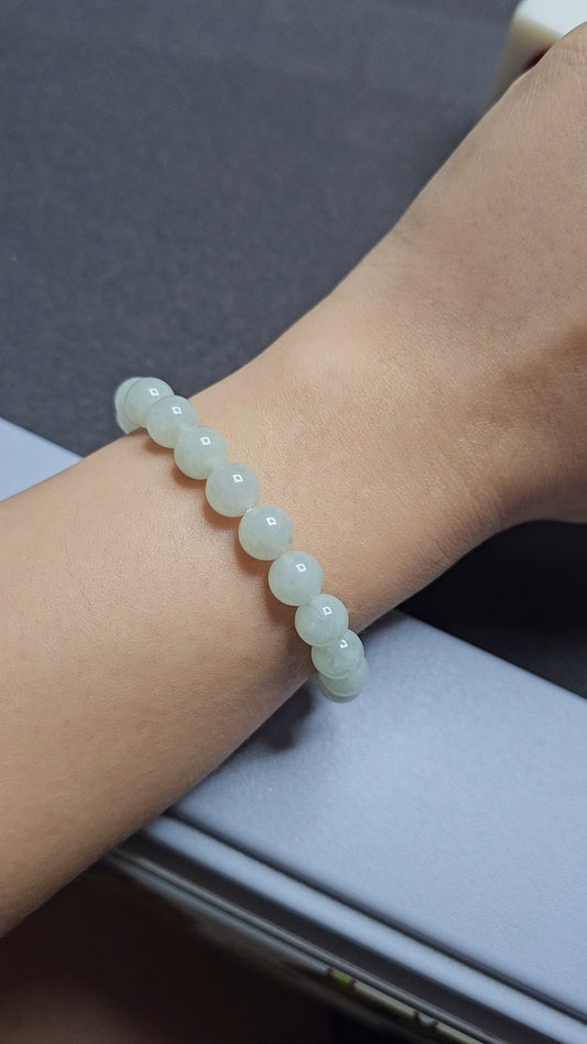Yuan | Jadeite Bead Bracelet in Light Pastel Green (8/10mm)