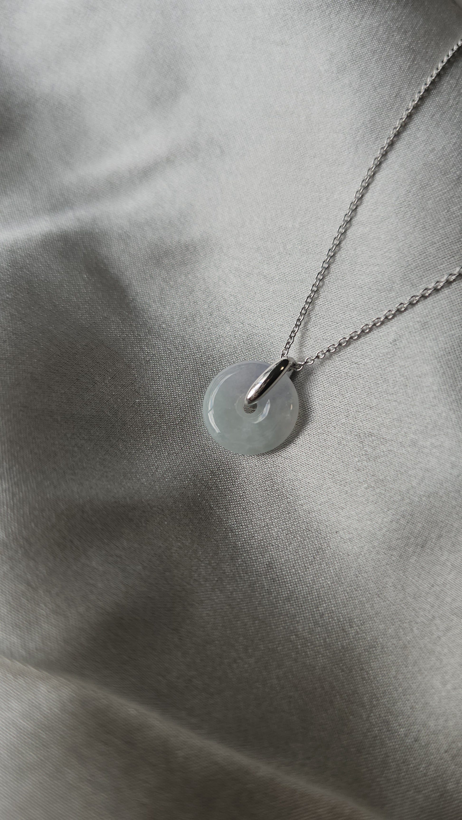 Guardian | Dreamy Safekeeping 'Ping An' Jadeite Pendant in Icy Mist (13mm)