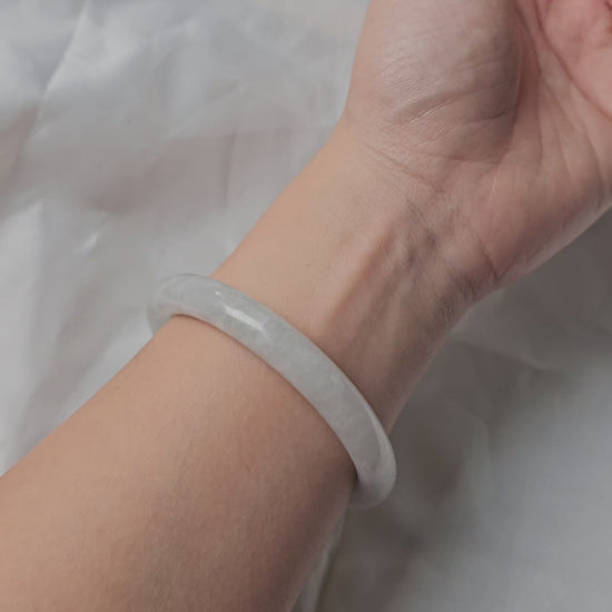 GUARDIAN | JAYDE Natural Grade-A Jadeite Bangle in Dreamy White with Pastel Green (55.4mm Round)