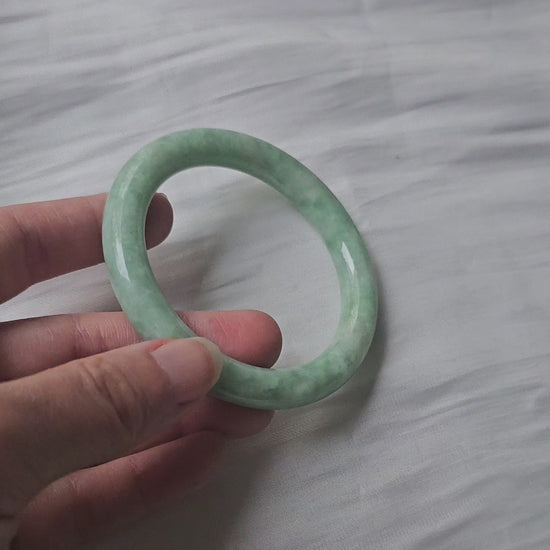 GUARDIAN | JAYDE Untreated Grade-A Jadeite Bangle in Pastel Green with Dark Green (54.5mm Round)