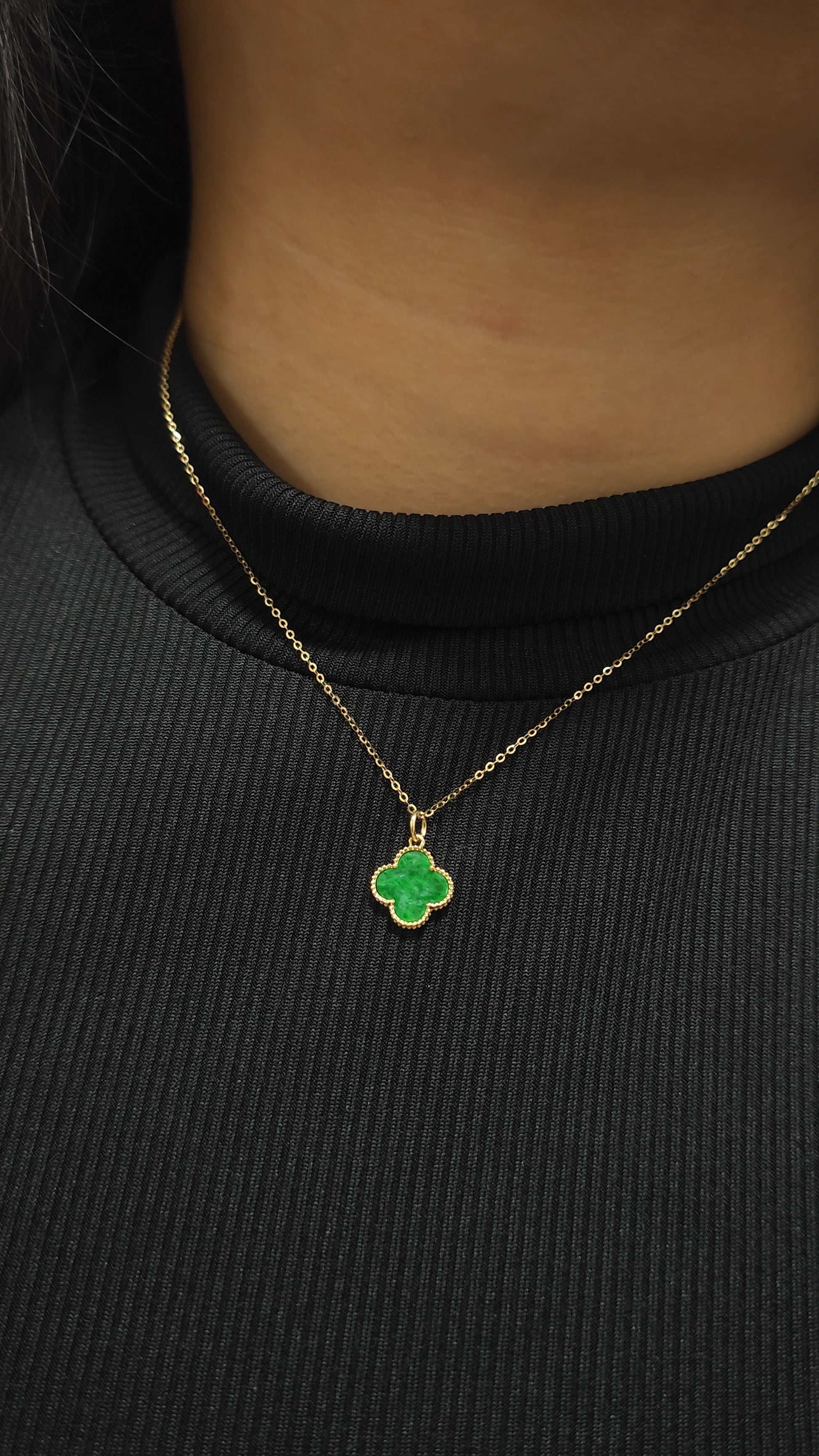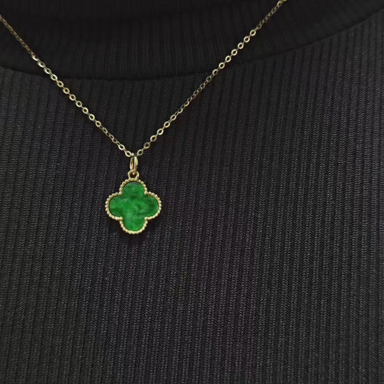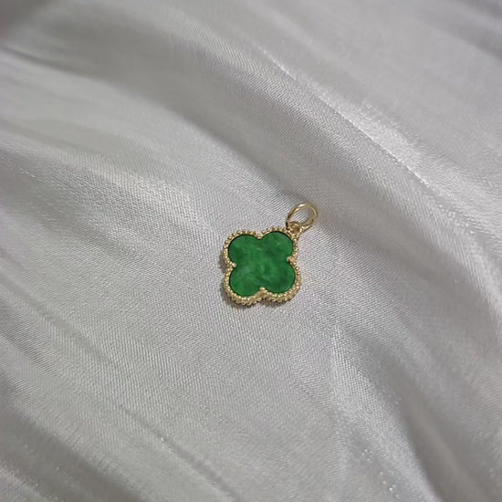 Nature | Serendipity Four Leaf Clover Jadeite Pendant in Deep Floral Green (18ct yellow gold)