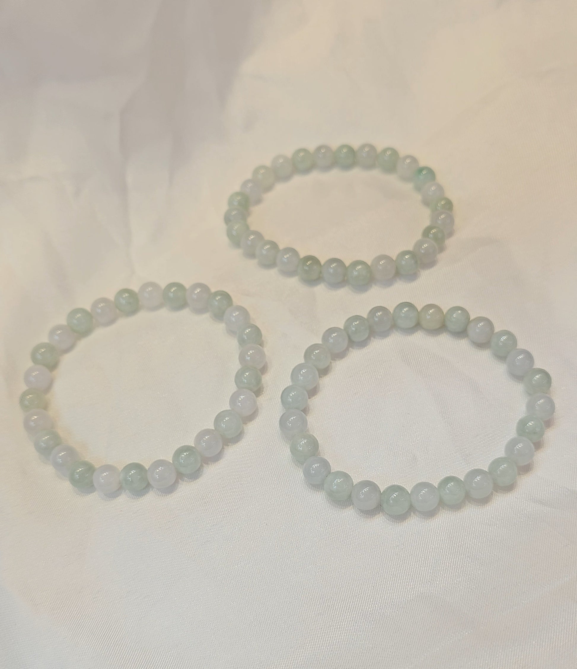 Yuan | Jadeite Bead Bracelet in Light Pastel Green and Dreamy White (7mm)