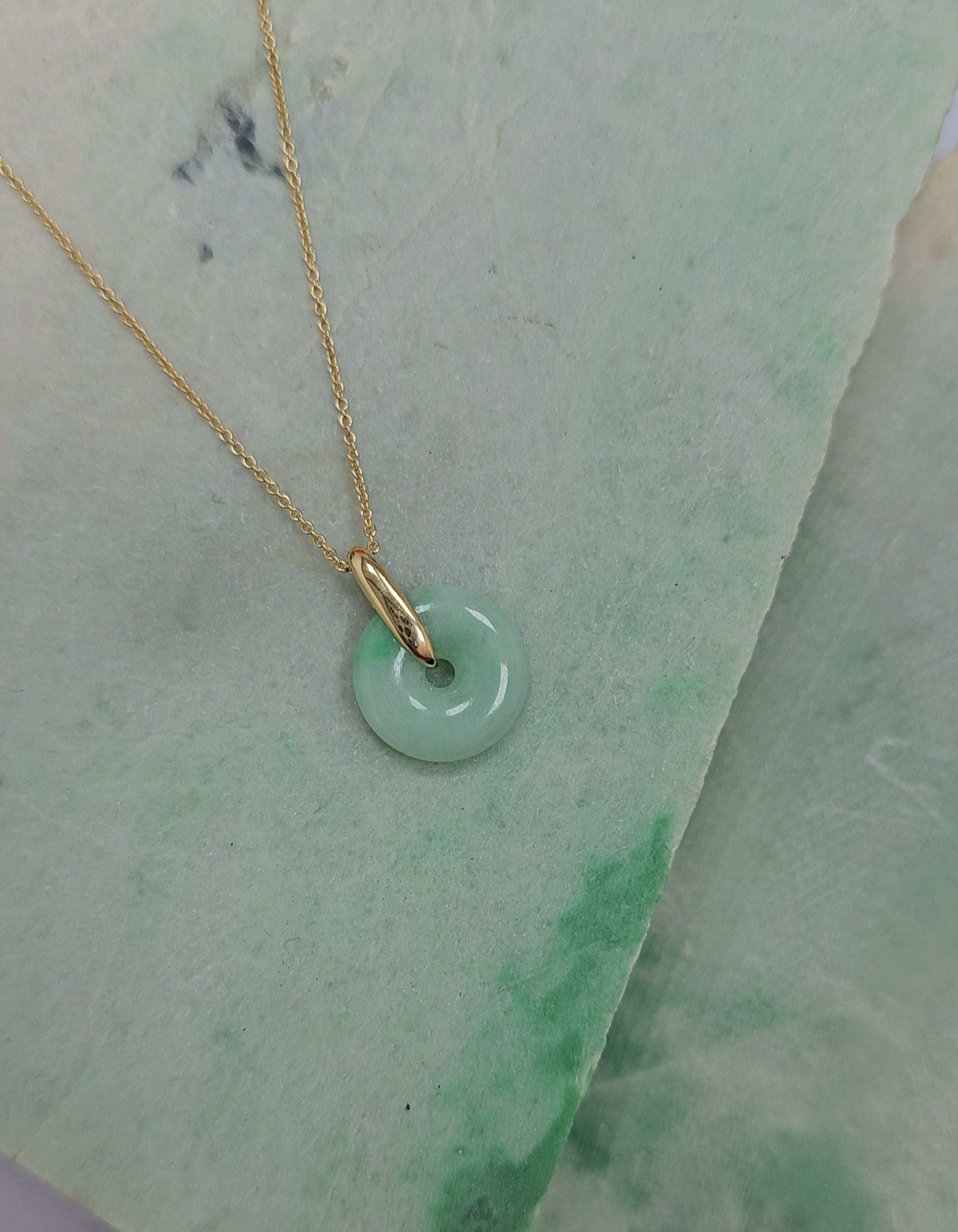 守護者 | 復古保管「平安」淡綠色翡翠吊墜(13 毫米,18K 鍍金/純金)