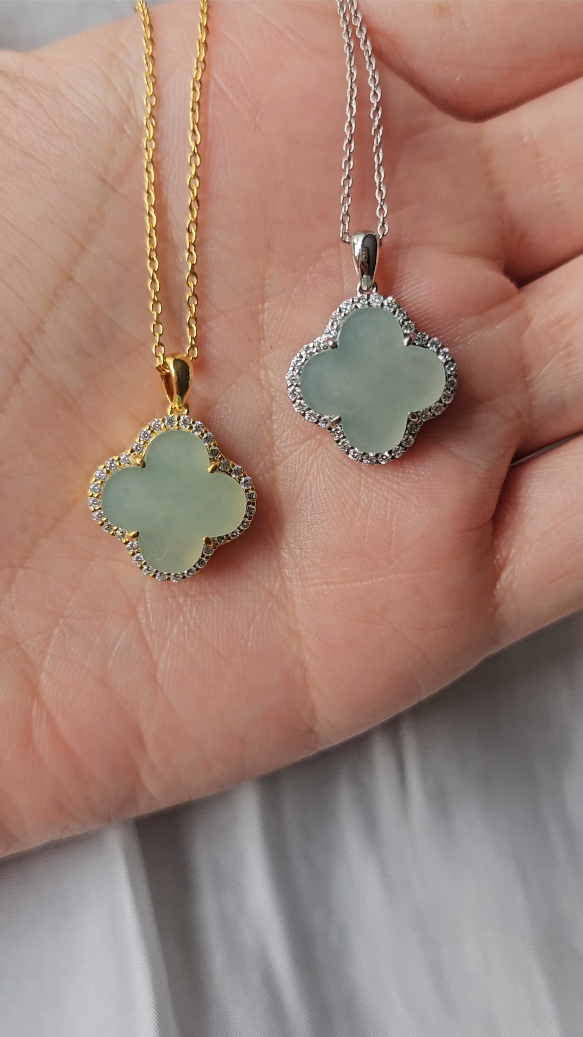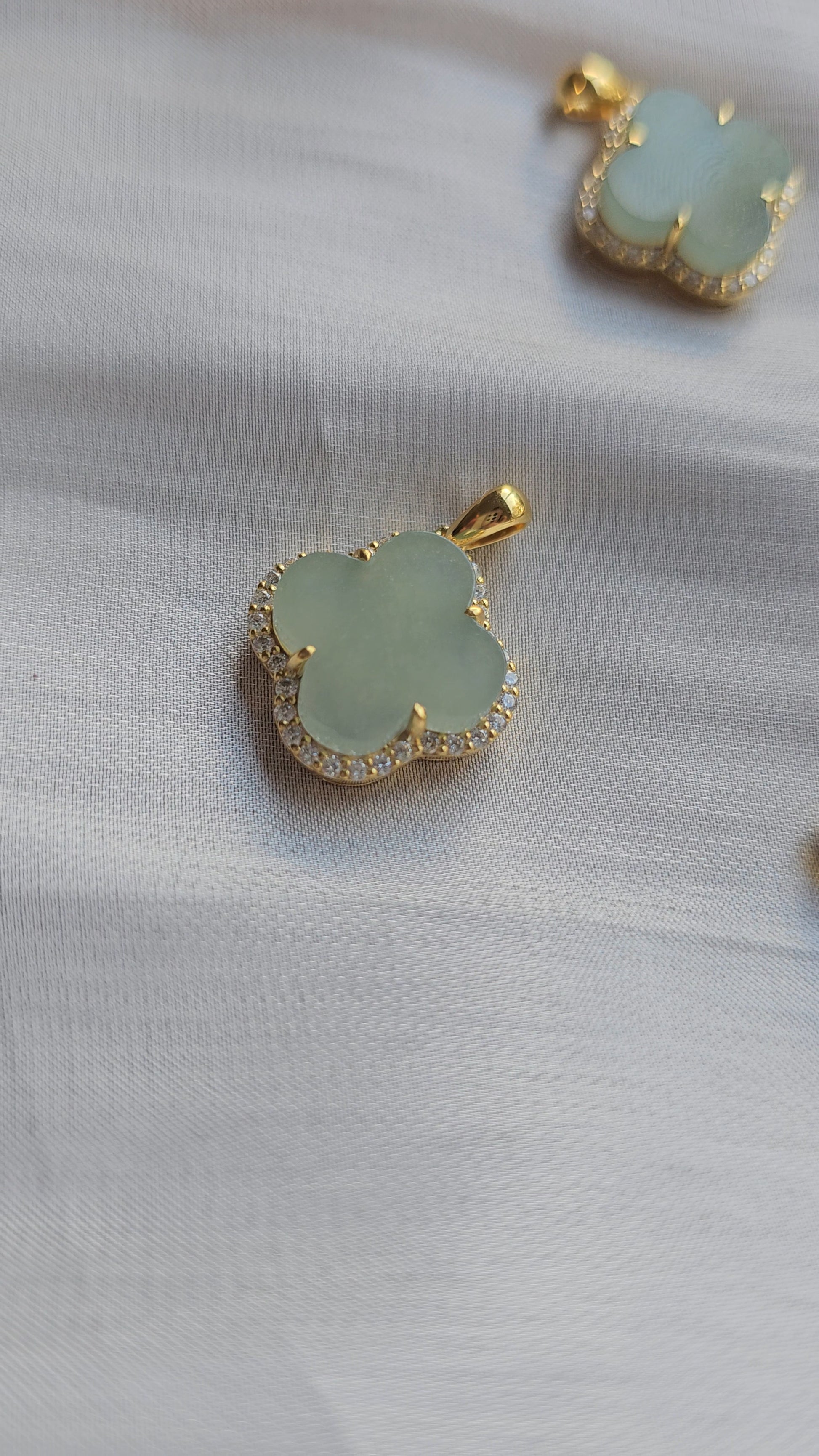 自然 | 緣份四葉草淺海綠色翡翠吊墜(18K鍍金)